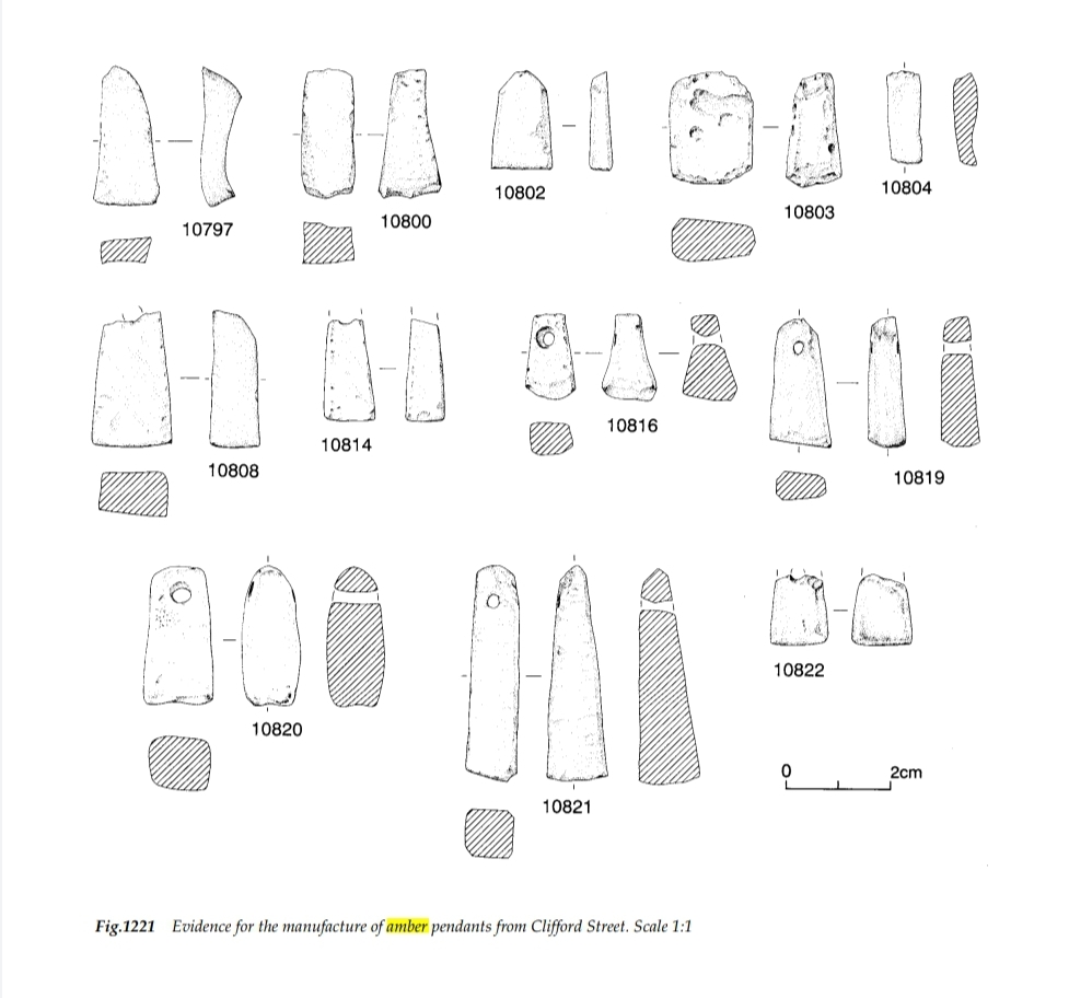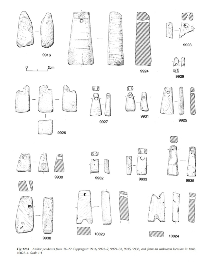 The evidence for jet working at 16-22 Coppergate is definite, whether or not that evidence belongs to the Anglo-Scandinavian period is a subject of debate. Some items were found in Anglo-Scandinavian levels, but it has been argued that they were Roman items that ended up deposited in later levels through the passage of time. It does however remain possible that some of these jet items were indeed stratified correctly and I am working with that assumption.