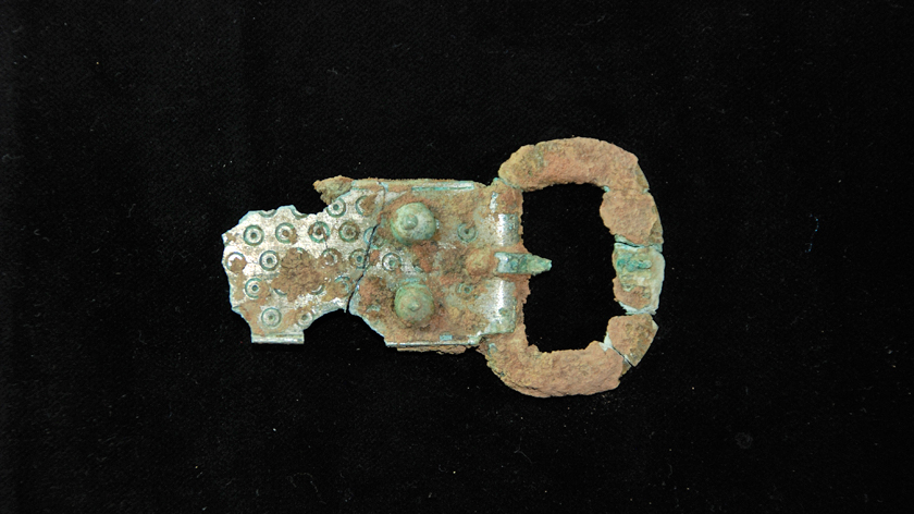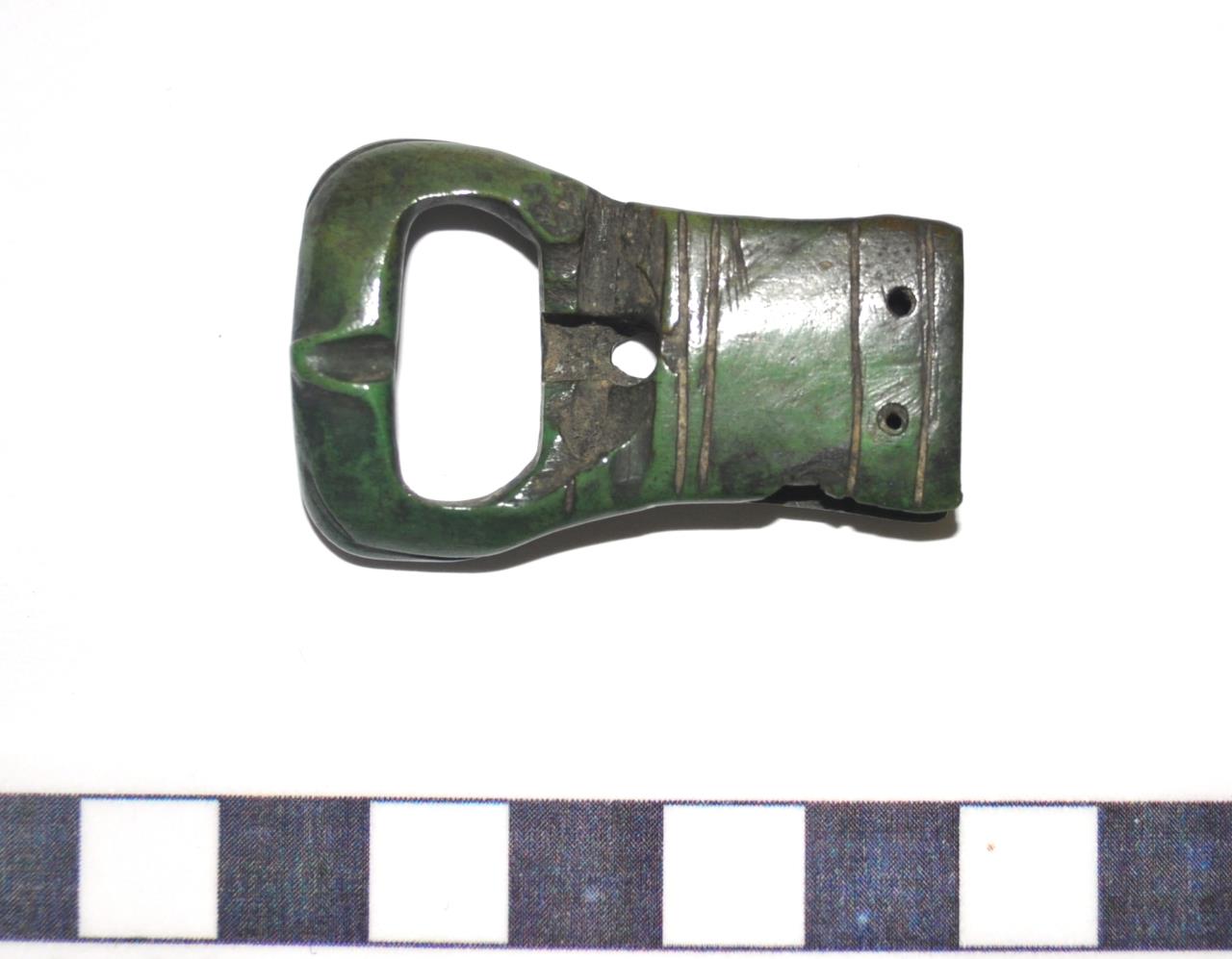 The entry for the dyed bone buckle from York in the York Museum Trust online collection. https://www.yorkmuseumstrust.org.uk/collections/search/item/?id=7484&search_query=bGltaXQ9MTYmc2VhcmNoX3RleHQ9QnVja2xlJlZWJTVCMCU1RD0mR3MlNUJvcGVyYXRvciU1RD0lM0UlM0QmR3MlNUJ2YWx1ZSU1RD04NjYmR2UlNUJvcGVyYXRvciU1RD0lM0MlM0QmR2UlNUJ2YWx1ZSU1RD0xMDY2JkZOPQ%3D%3D